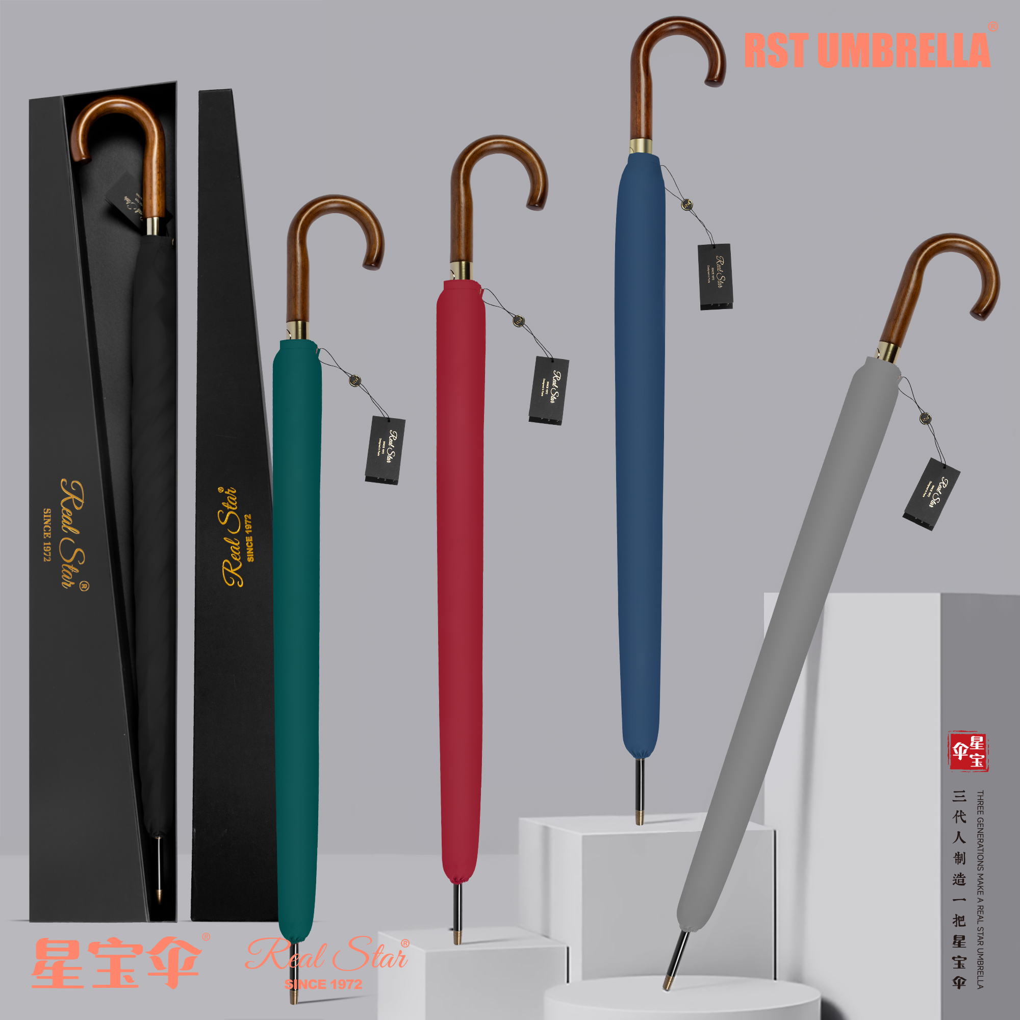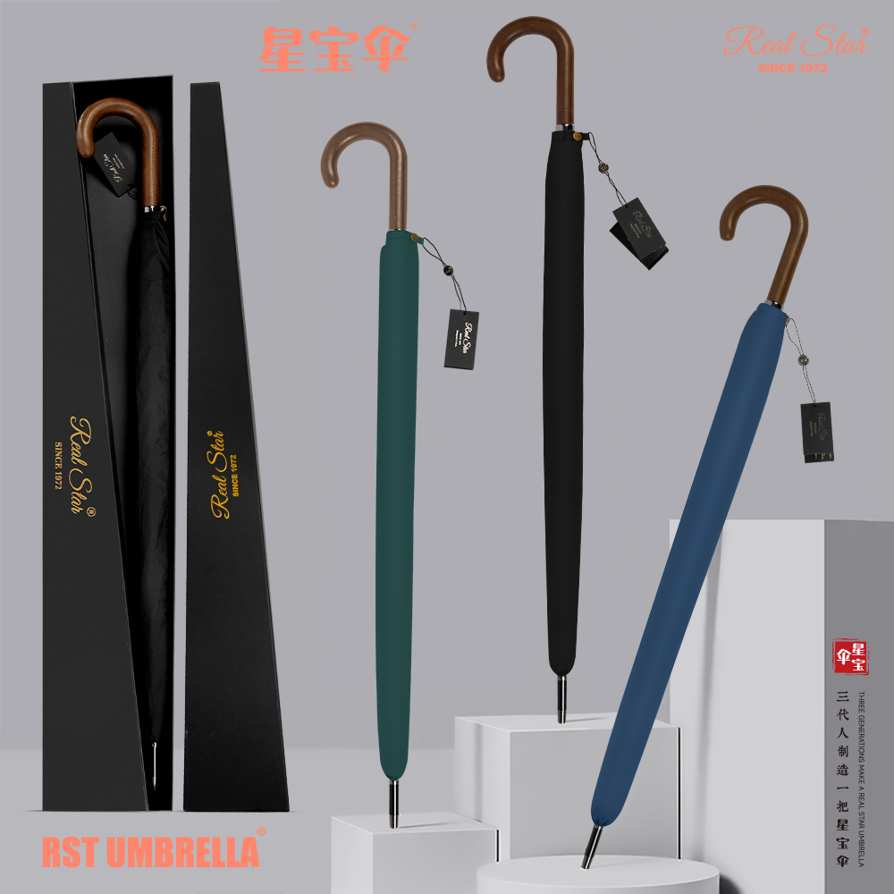 【星宝伞RST】1923义乌好货高端男伞实木手柄弯钩雨伞长柄纤维骨抗风280T加厚伞布雨伞
