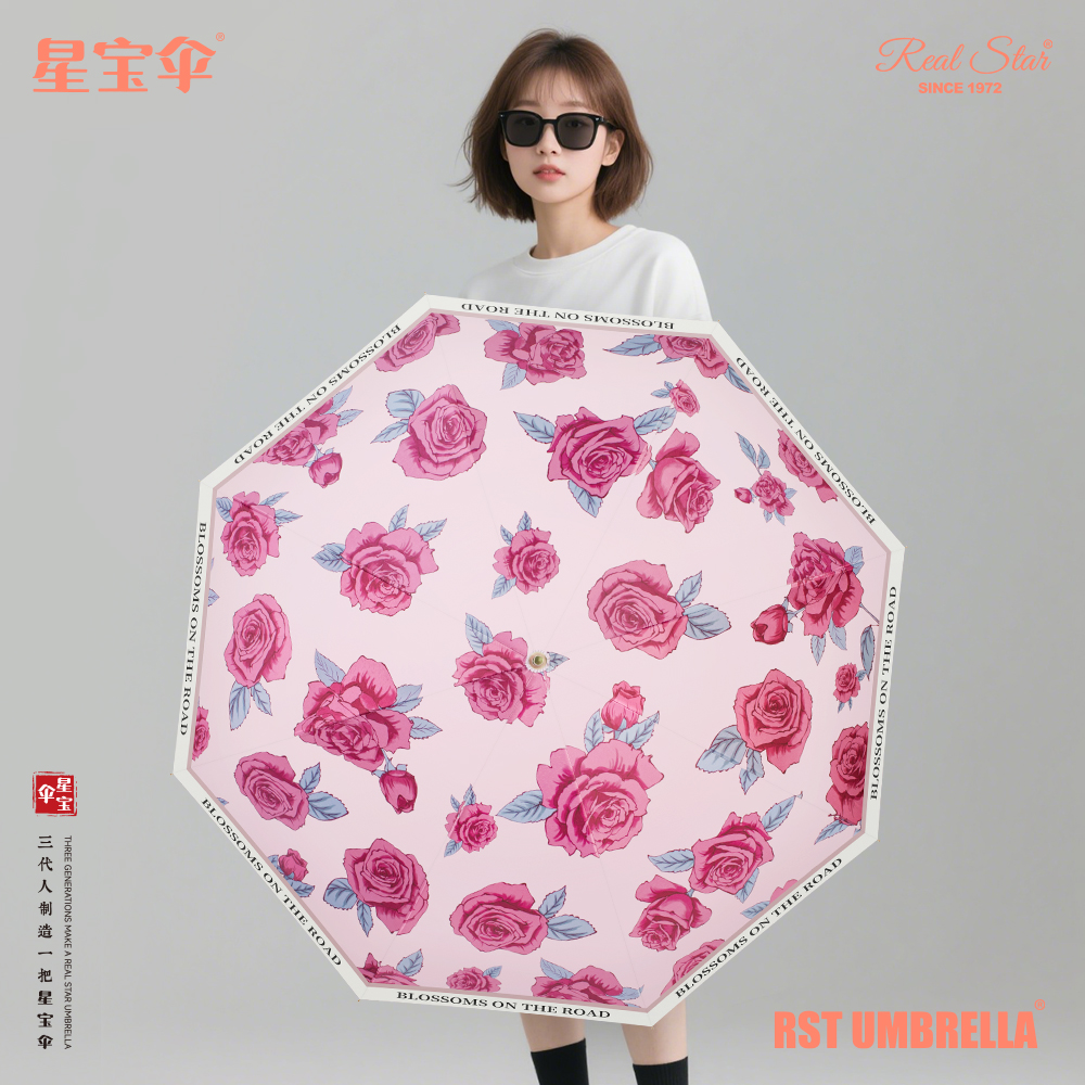 【星宝伞RST】6122玫瑰花雨伞长伞防嗮晴雨2用细长手柄太阳伞晴雨伞2用防紫外线雨伞