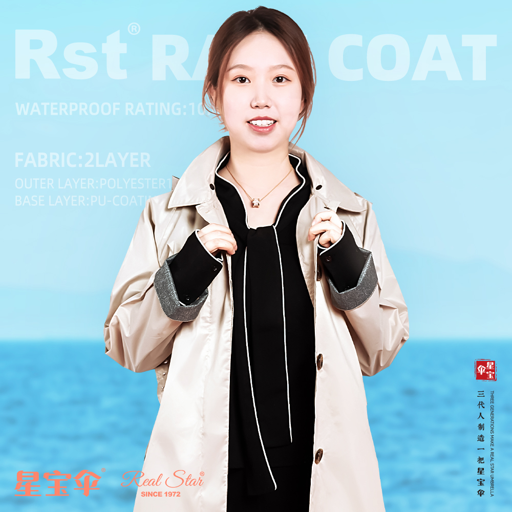 【星宝伞RST】2002 双层加厚抗水压不渗水女士优雅雨衣超强防泼水雨衣雨衣